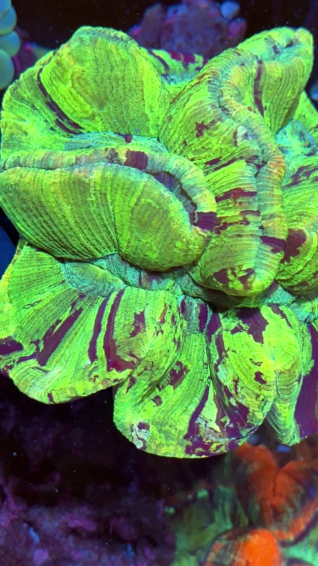 Insane Green Striped Trachyphyllia Wellsophyllia Meat Coral XXXL Show Piece 10/12